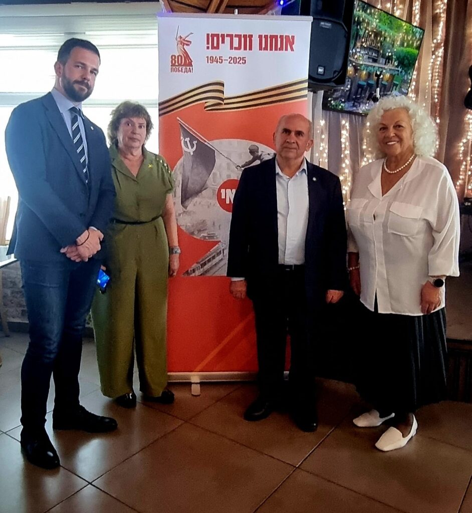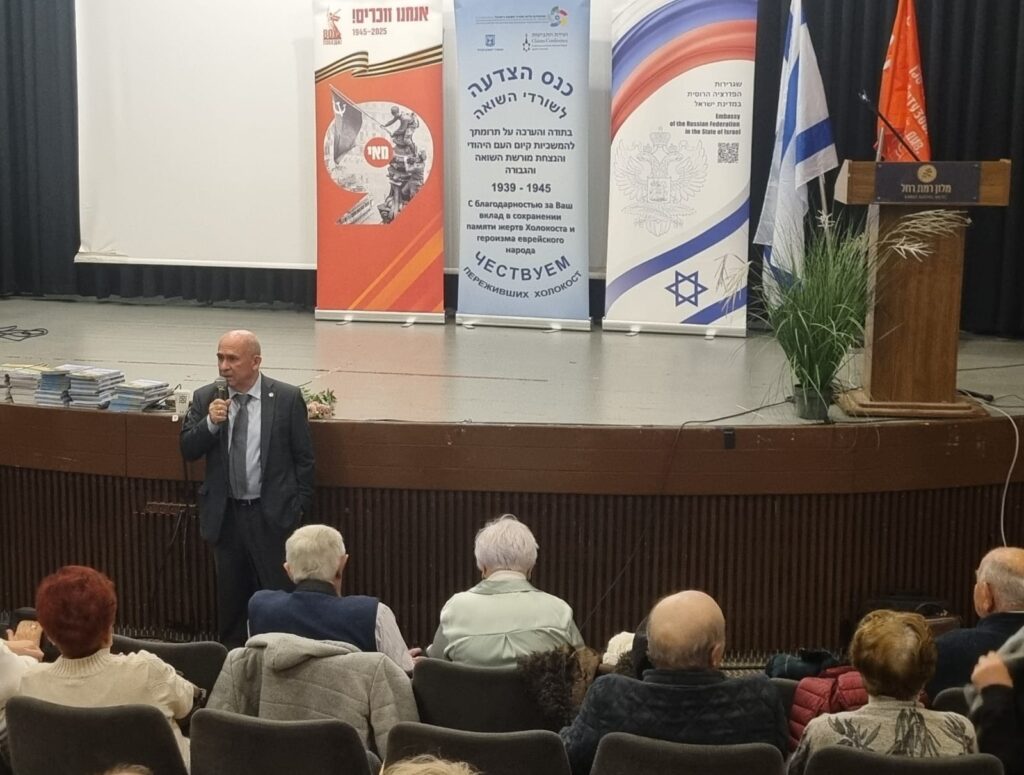 В приветственном слове посол Российской Федерации Анатолий Дмитриевич Викторов отметил решающий вклад всех воинов Красной армии в общую победу над нацизмом, в прекращение Холокоста. Подчеркнул необходимость сохранения исторической правды о событиях Великой Отечественной и Второй мировой войн и ее передачи грядущим поколениям. Отметил готовность посольства активно содействовать проведению в Израиле комплекса мероприятий по празднованию 80-летия Великой Победы. Пожелал всем крепкого здоровья и долголетия.