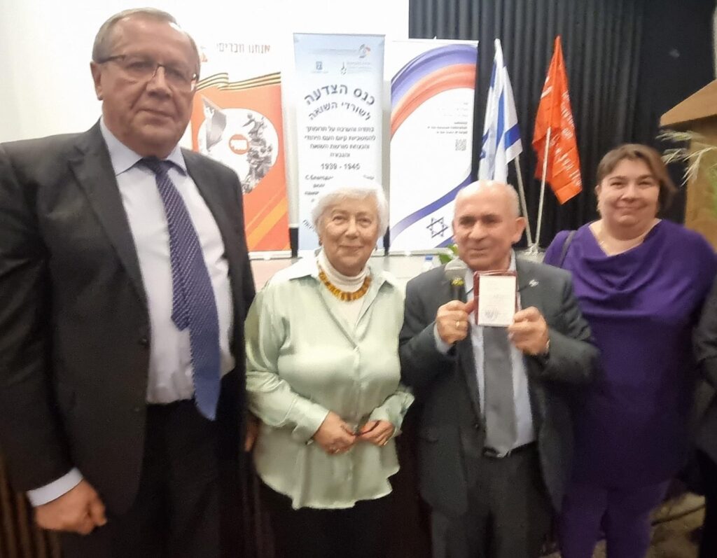 Посольство Российской Федерации уже начало передавать эти награды в общественные организации для награждения ветеранов, блокадников и переживших Катастрофу. И первым из подобных мероприятий стала конференция, состоявшаяся 18 февраля в Иерусалиме, в зале гостиницы кибуца Рамат Рахель. Она была организована Объединением беженцев и спасшихся в Холокосте под руководством Юды Давыдова во взаимодействии с Российским посольством.