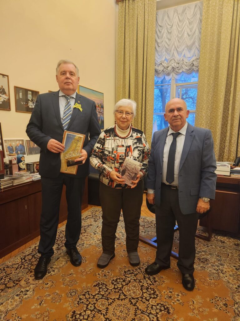 Затем израильская делегация была приглашена в Комитет по внешним связям Санкт-Петербурга, расположенный в историческом здании Смольного института, нас принимали первый заместитель председателя Комитета Сергей Марков и начальник Отдела по связям с соотечественниками за рубежом Александр Ганин. Состоялись важные переговоры по развитию сотрудничества, на основе предложенных Ягудой Давыдовым проектов. Это, во-первых, создание в Израиле филиала Государственного мемориального музея обороны и блокады Ленинграда (с директором музея Еленой Лезик уже ведутся переговоры). Во-вторых, создание Рощи памяти в лесу Праведников мира под Иерусалимом, установка обелиска и посадка деревьев в память о защитниках и жителях блокадного Ленинграда (лес Праведников — действующий проект увековечивания памяти о переживших Холокост Еврейского Национального фонда Керен Каемет ле Исраэль). Во время обсуждения была затронута тема участия российской стороны в реализации предложенных проектов.