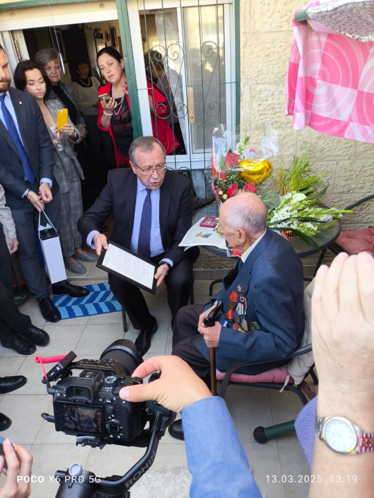 В своем приветствии он отметил заслуги и вызывающие уважение обстоятельства его личной жизни и вручил юбилейную медаль в честь 80-летия Победы в Великой Отечественной войне. Поздравительный адрес и корзину цветов от имени генерального директора Объединения Юды Давыдова преподнесла юбиляру зам. председателя правления Эмилия Ларина. Сам Юда тепло поздравил ветерана по телефону.