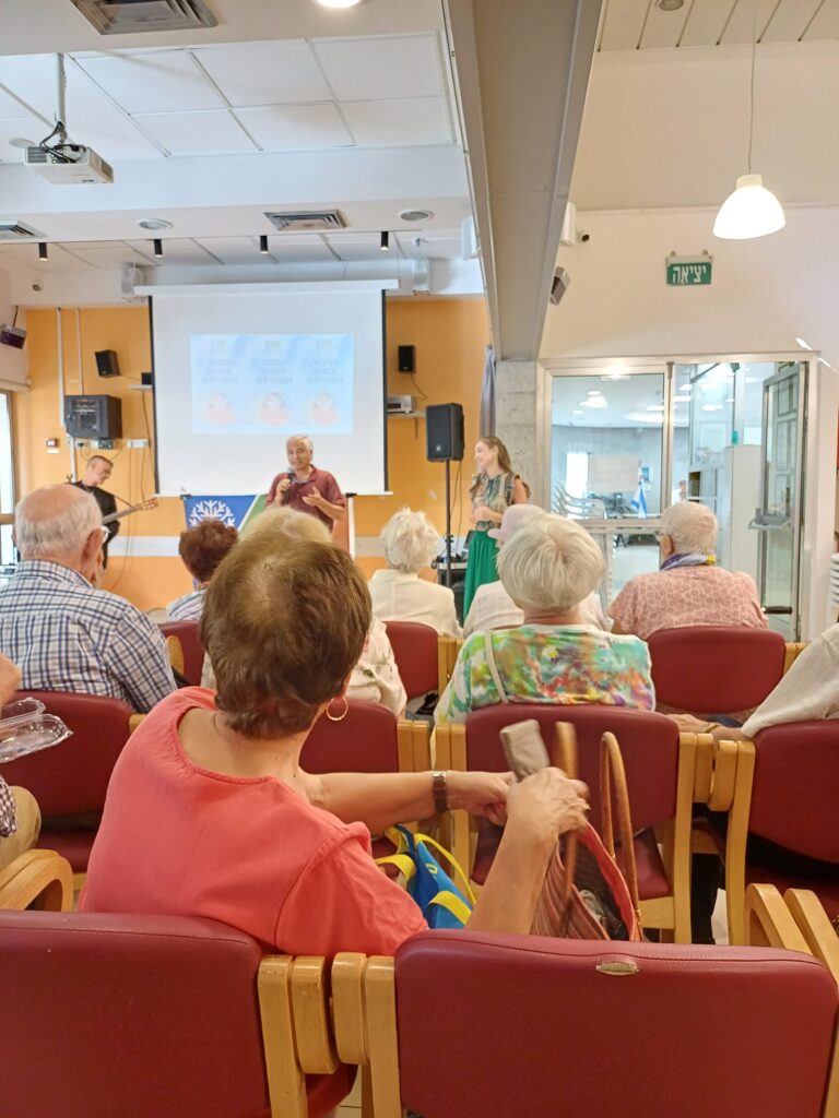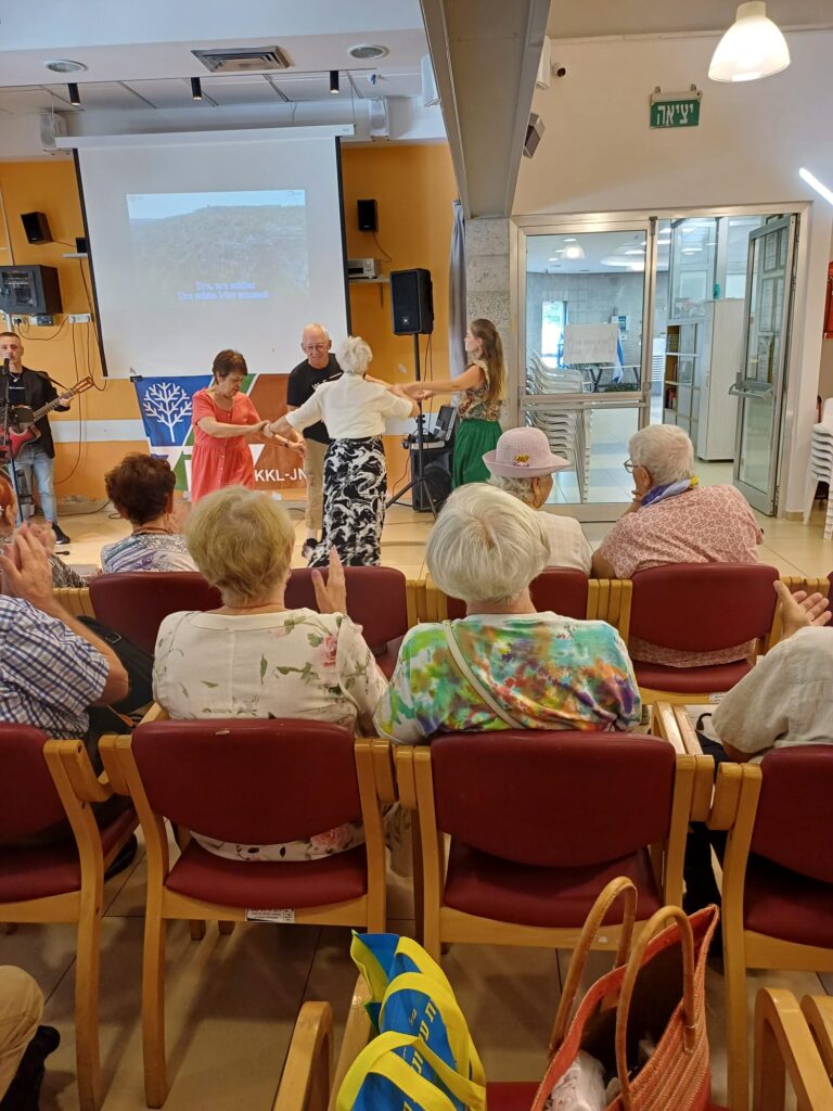 Мы действительно участвовали в концерте, так как пели и танцевали вместе с обаятельным, харизматичным Исраэлем. Равноправным участником концерта была и супруга певца. Глядя на фотографии со всех концертов в городах Афула, Ноф Агалиль, Натания, Кармиэль, Ришон Лецион, Иерусалиме и др., мы понимаем, как важны такие проекты для людей, не имеющих возможность в силу возраста и обстоятельств, выезжать в другие города.