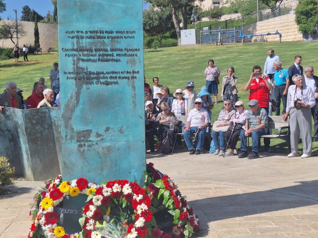 В церемонии возложения венков и цветов к подножию монумента, в основании которого помещена урна с землей Пискаревского кладбища, приняли участие Посол России в Израиле Анатолий Дмитриевич Викторов, ответственные сотрудники посольства, директор Русского дома в Израиле Д.А.Магад, председатель Объединения беженцев и переживших Катастрофу Иегуда Давыдов, председатель Объединения защитников и жителей блокадного Ленинграда Эмилия Ларина, представители Союза ветеранов Второй мировой войны, ветераны, журналисты.