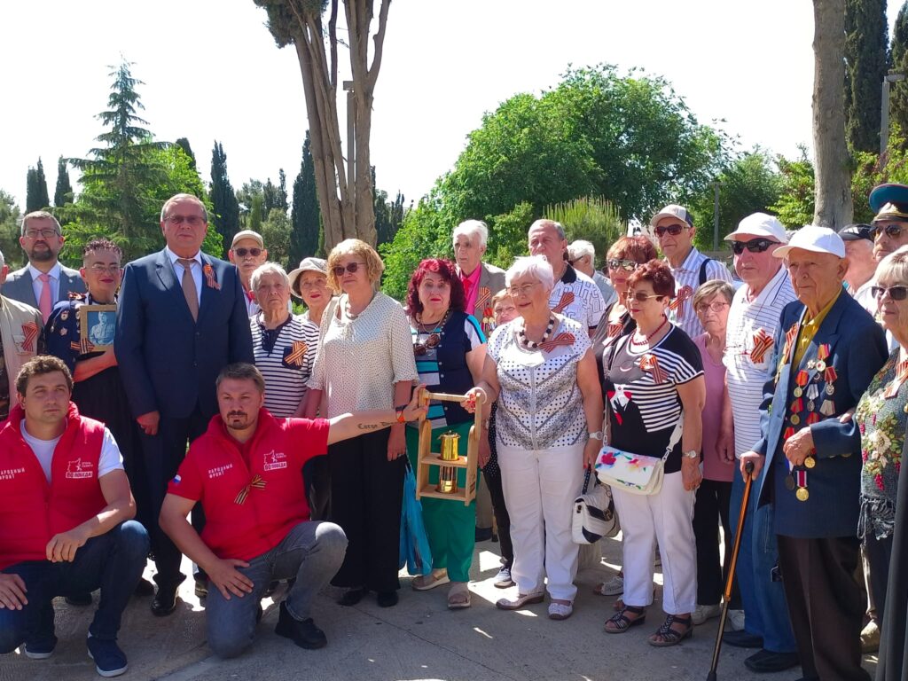 Частичку вечного огня от Могилы неизвестного солдата в Москве вручили Ветерану ВОВ А.Гутковичу и Э.Лариной.