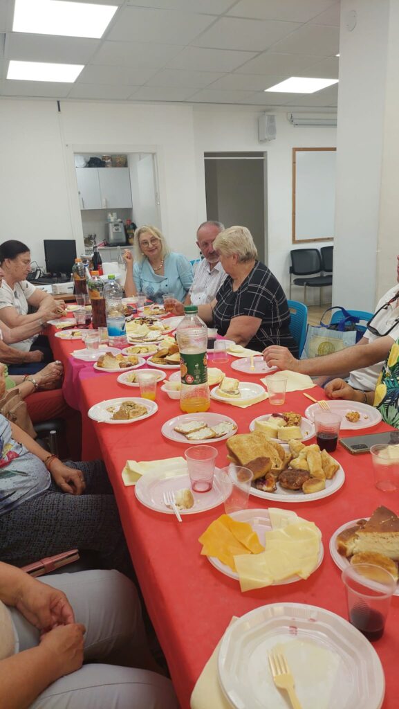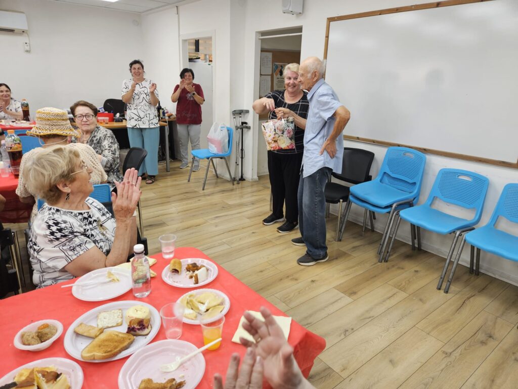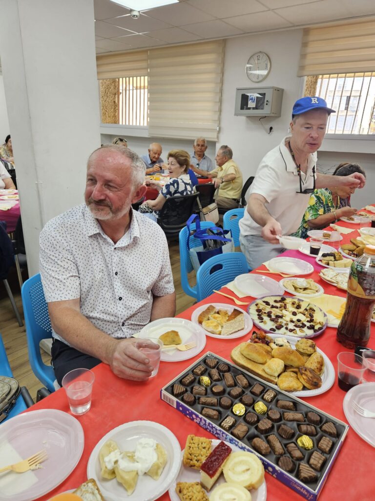 Эдик очень интересно рассказал про праздник шавуот, затем мы сделали застолье с вкусностями из молочных продуктов, посидели, пообщались, поздравили юбиляра, которому вчера исполнилось 90 лет, если бы не короткий день, что людям надо было на автобусы и домой, расходиться никто не хотел.