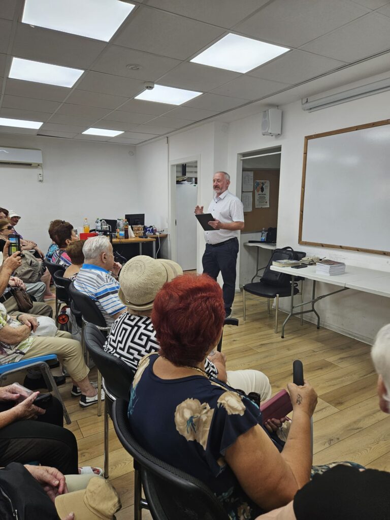 Открыл встречу Юда Давыдов. Он сердечно приветствовал собравшихся, поздравил с грядущим волнующим событием – 80-летием Победы, рассказал о большой работе организации по поддержке всех переживших Катастрофу и перспективных планах по сохранению памяти и о войне, и подвиге тех, кто боролся с фашизмом.